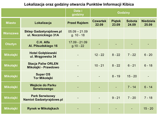 Punkty Informacji Kibica 68. Rajd Polski | 2011-09-17 |