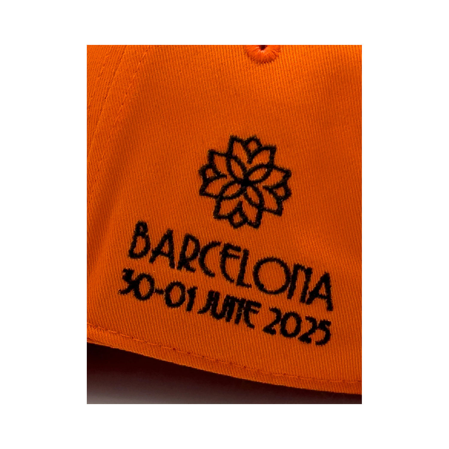 Z lewej umieszczono wyszywany napis "BARCELONA 30 MAY - 1 JUN 2025"