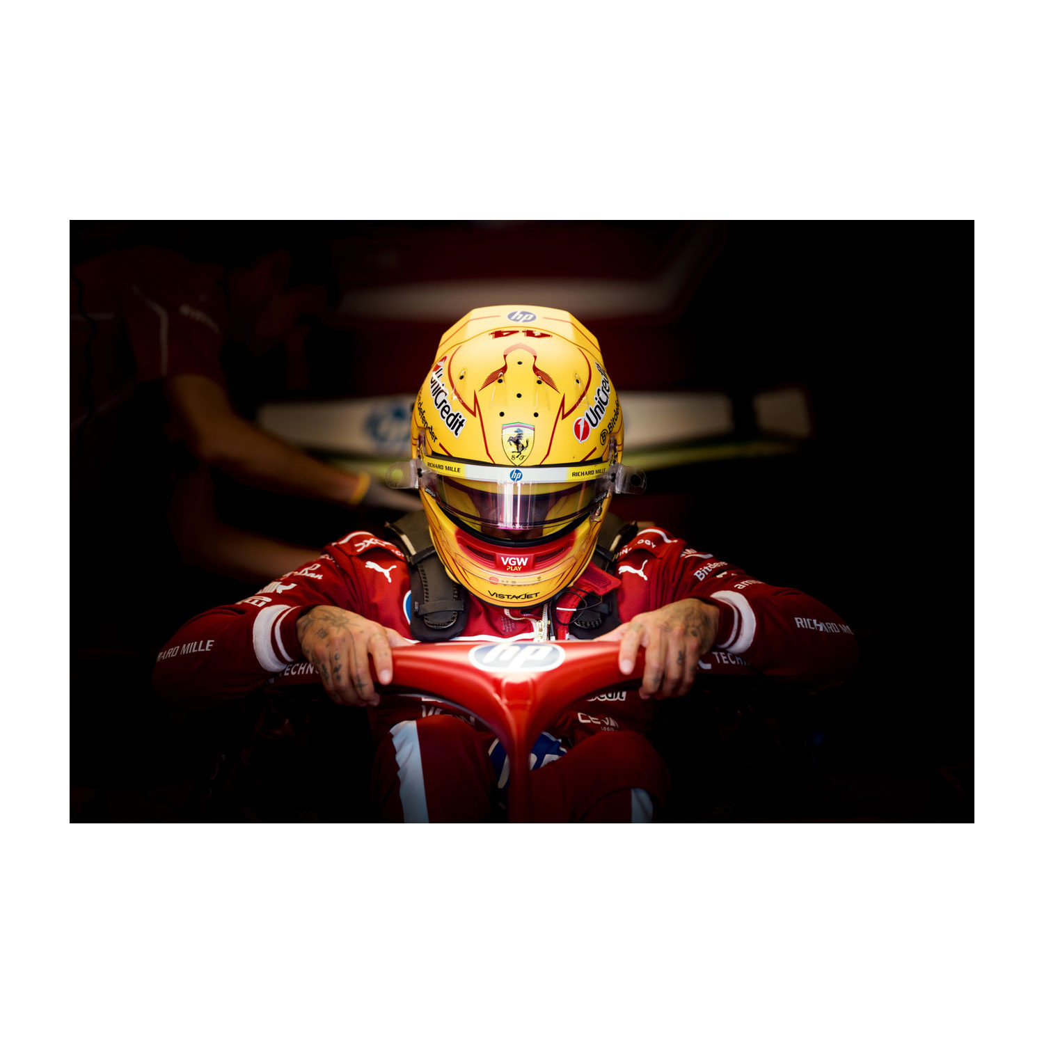 Model kasku wyścigowego Lewisa Hamiltona w barwach Scuderia Ferrari