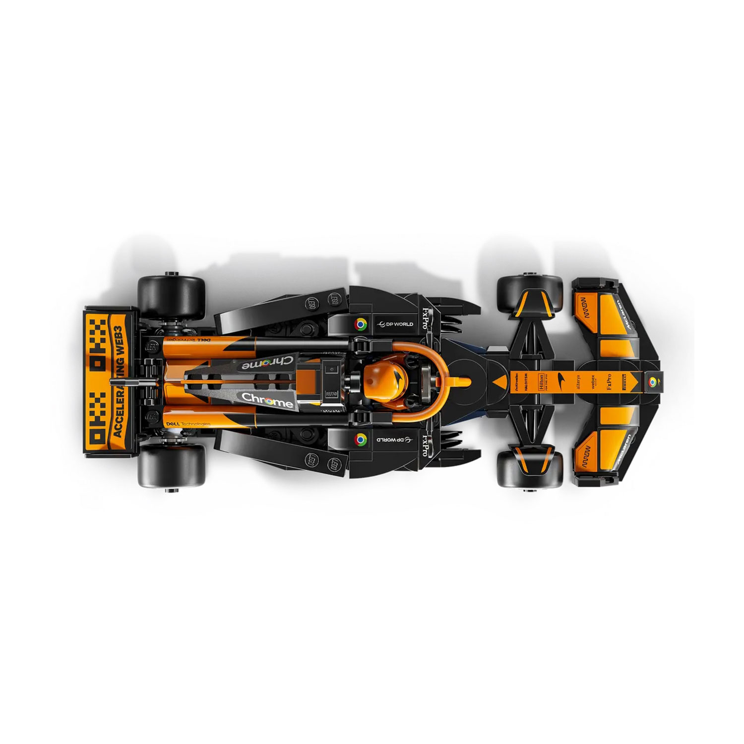 W komplecie znajduje się również minifigurka kierowcy w oficjalnym stroju McLaren F1.